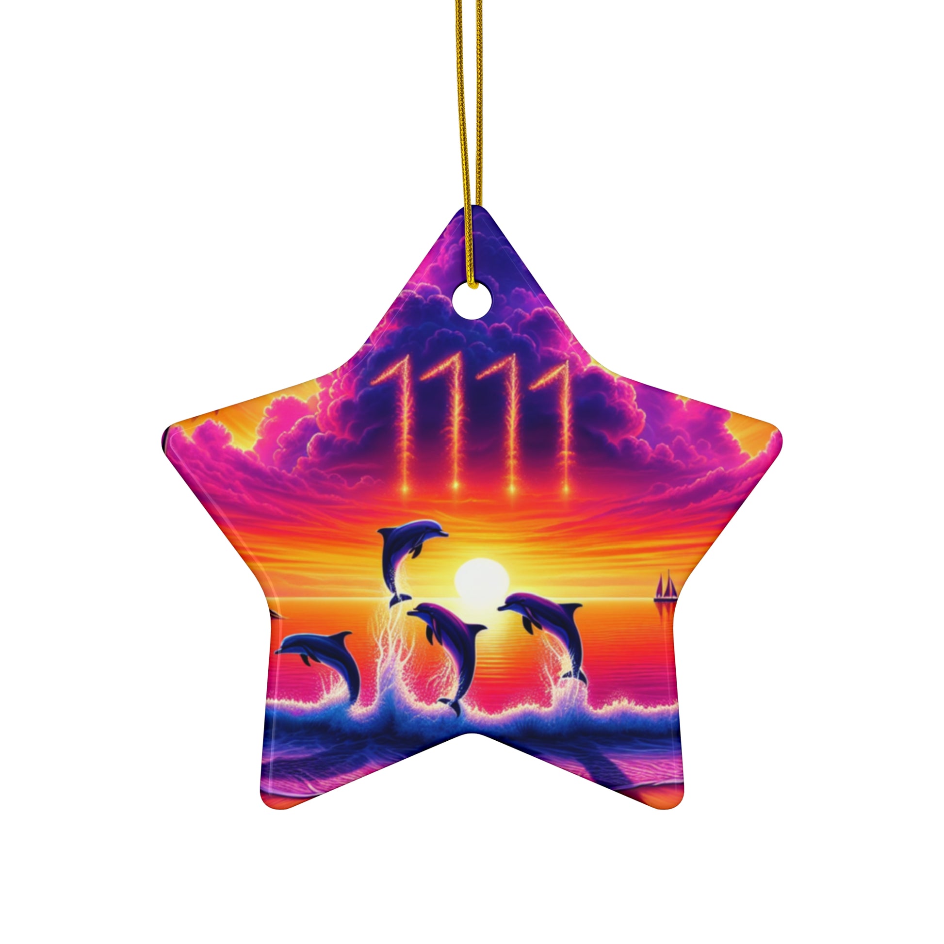 Ceramic Ornament Star, Heart, Snowflake or Circle 1111 "Paradise Dusk: A Tropical Symphony of Colors" - Tropical Beach Sunset with Palm Trees