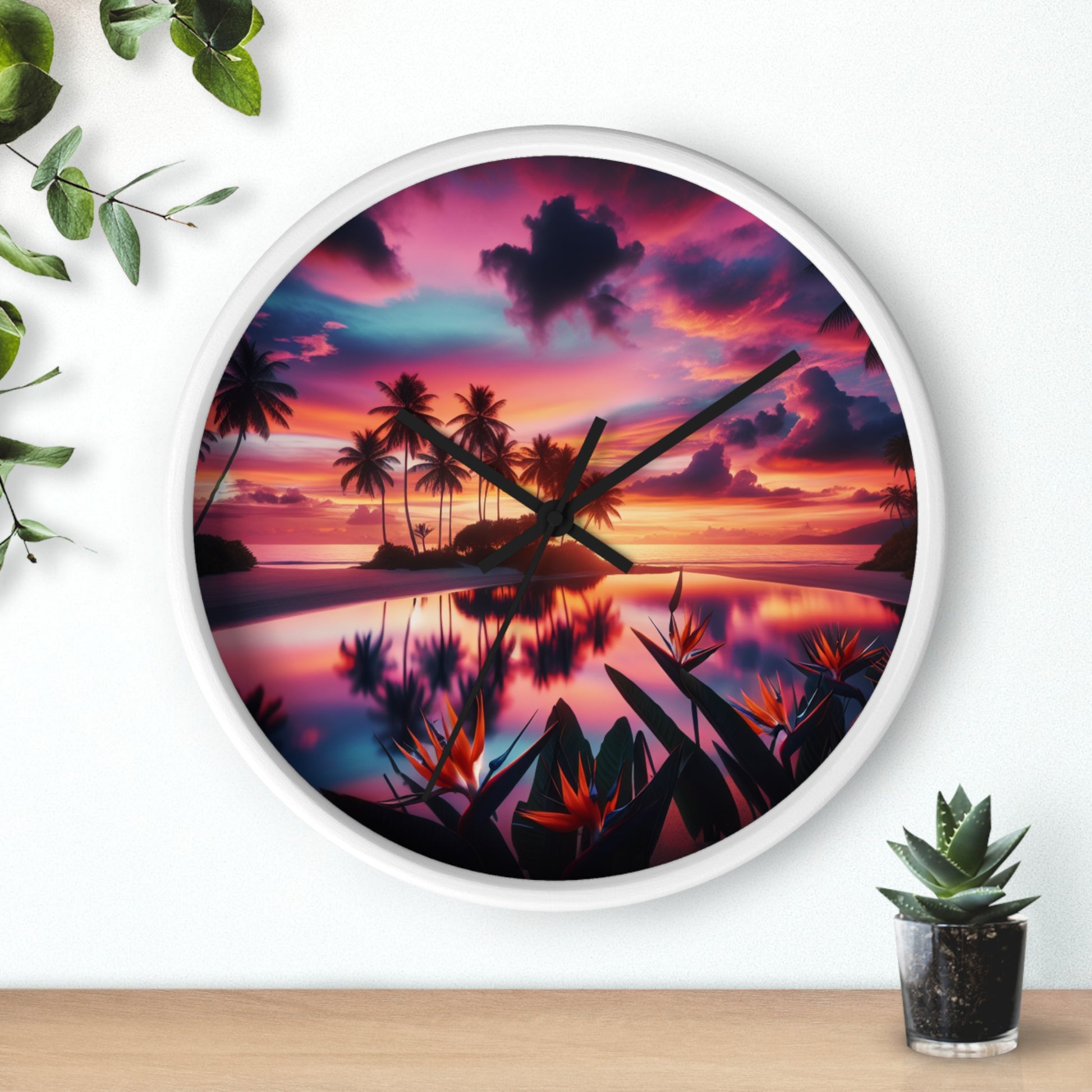#TropicalClock #BeachDecor #WallClock #SunsetDesign #HomeDecor #TropicalDecor #PalmTrees #BirdsOfParadise #InteriorDesign #ParadiseAtHome