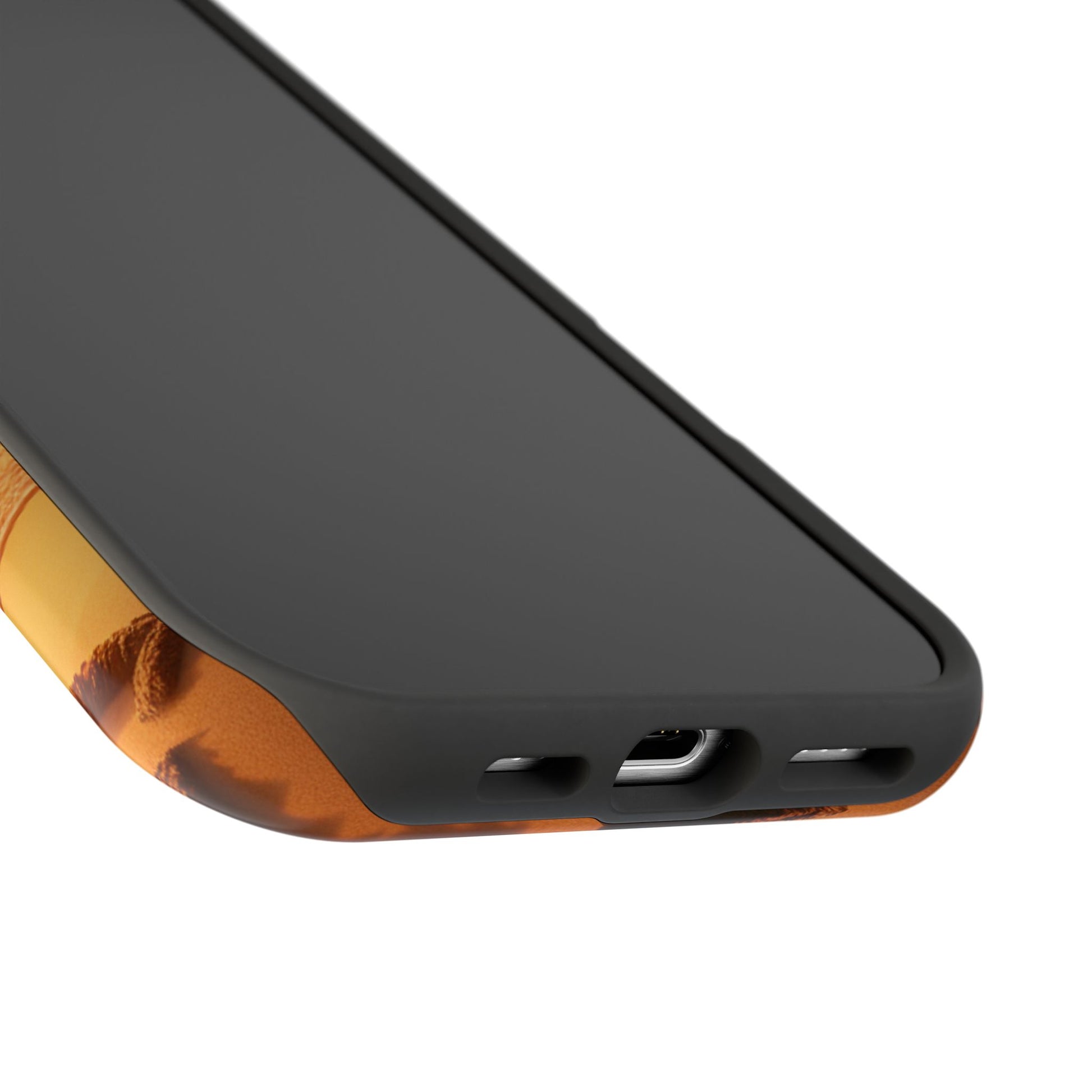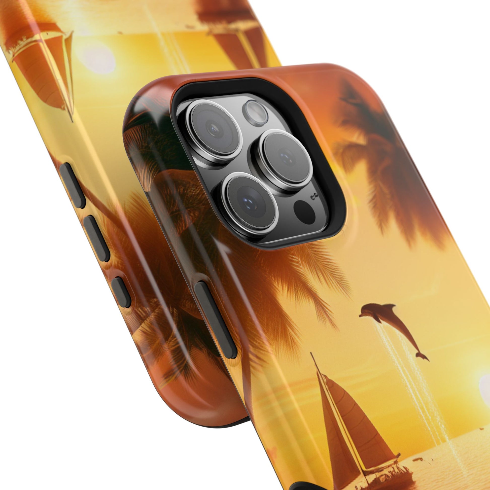 Magnetic Tough Phone case for phone 16 15 14 13 Pro Plus and Max 1111 "Sundrenched Palms: A Tropical Twilight Masterpiece" - Tough Phone Case with Tropical Beach Sunset Dolphins ande Sailboats HD Art