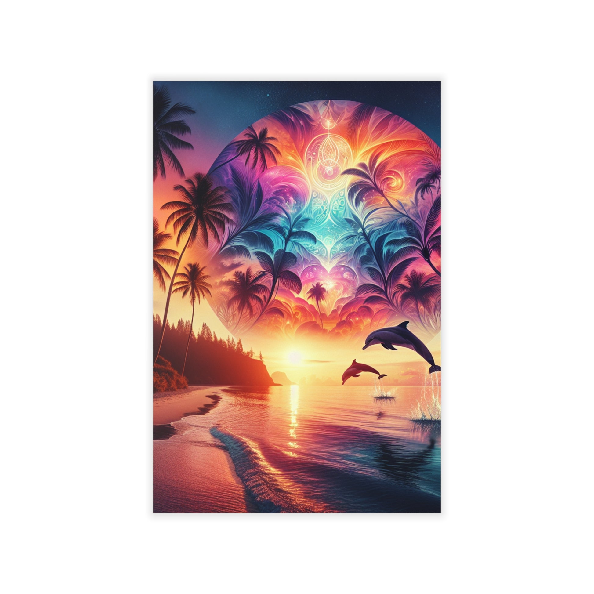 Repositionanable Wall Art 1111 "Serenade of the Sun: A Tropical Dusk Symphony" - Tropical Beach at Sunset