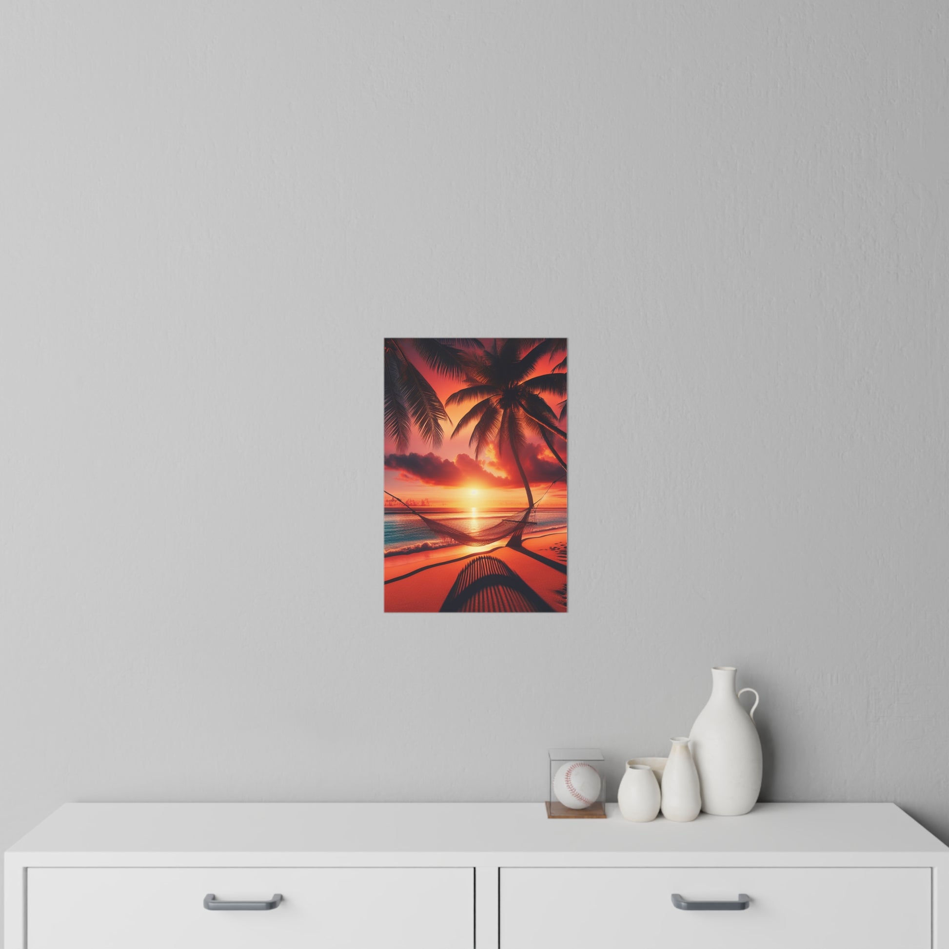 "Tropical Twilight Serenity: An Ode to Palm Paradises" - Tropical Beach at Sunset Repositionanable Wall Art